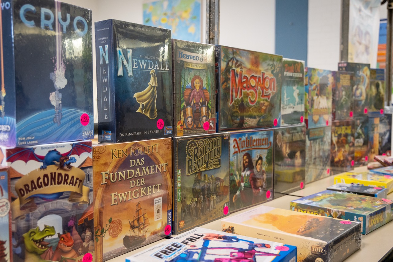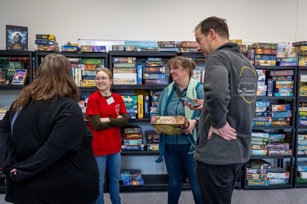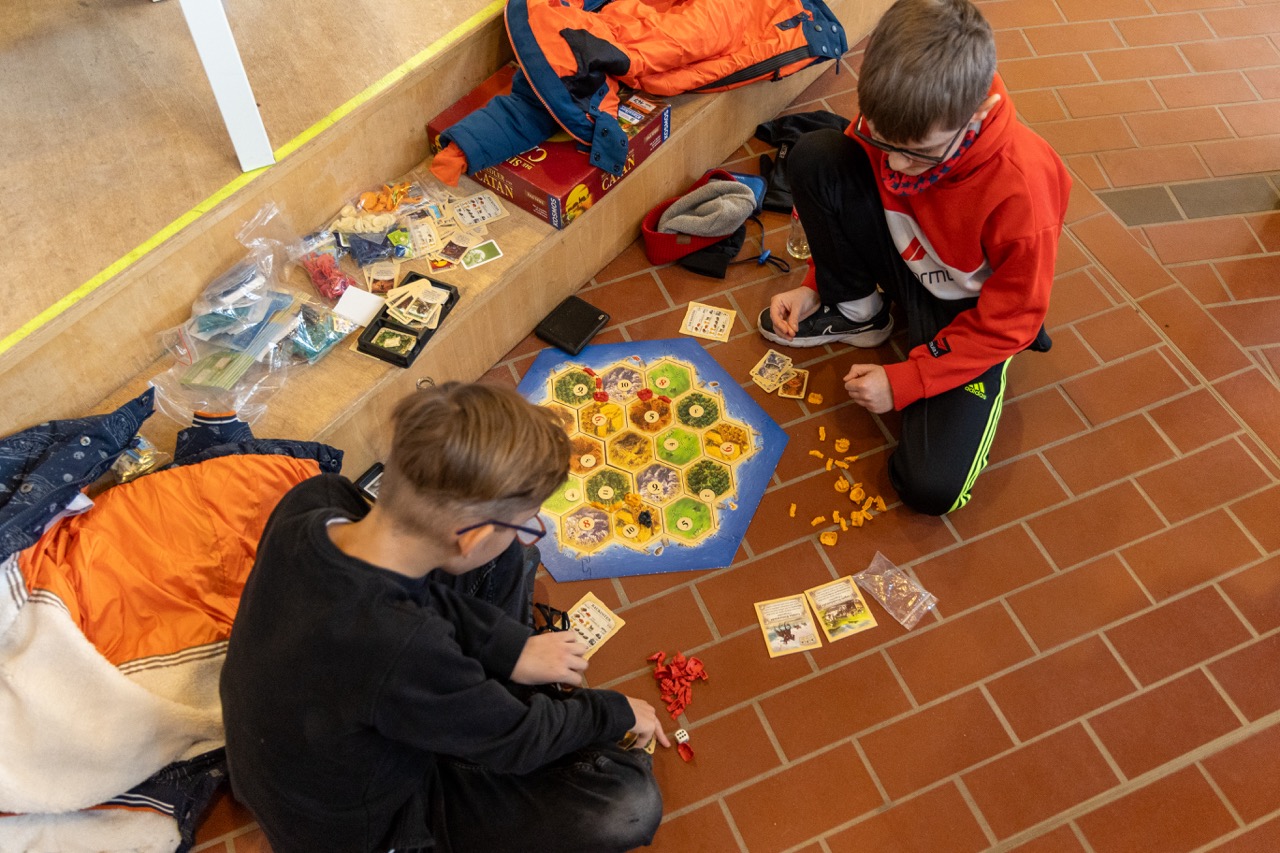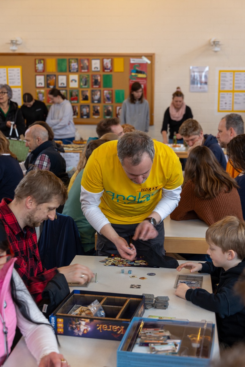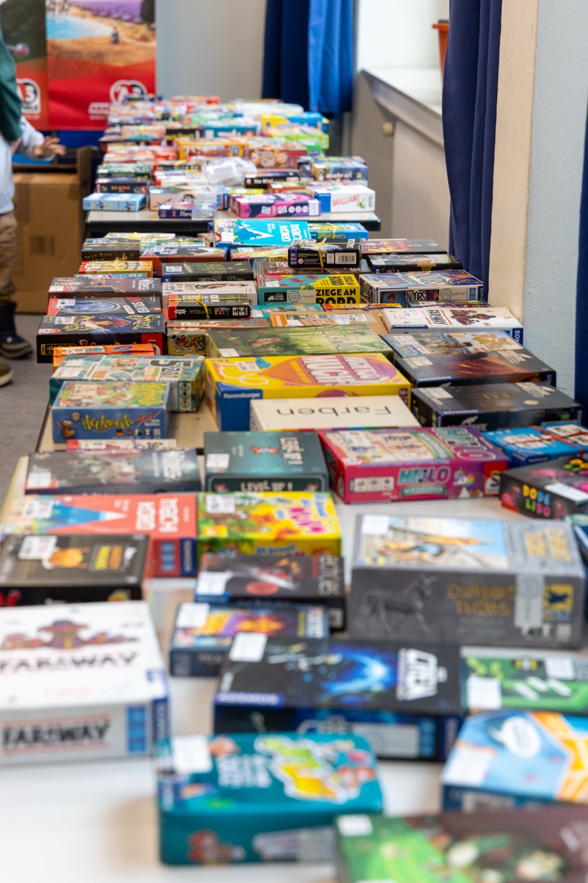 haben die Norddeutsche Spielekultur e.V. und die Brettspielfreunde Hildesheim e.V. zur kostenlosen Ausleihe bereit gestellt. Wir hatten über 20 helfende Hände mehr oder weniger im Dauereinsatz. Dazu kommen noch die vielen Freiwilligen aus der Schule!