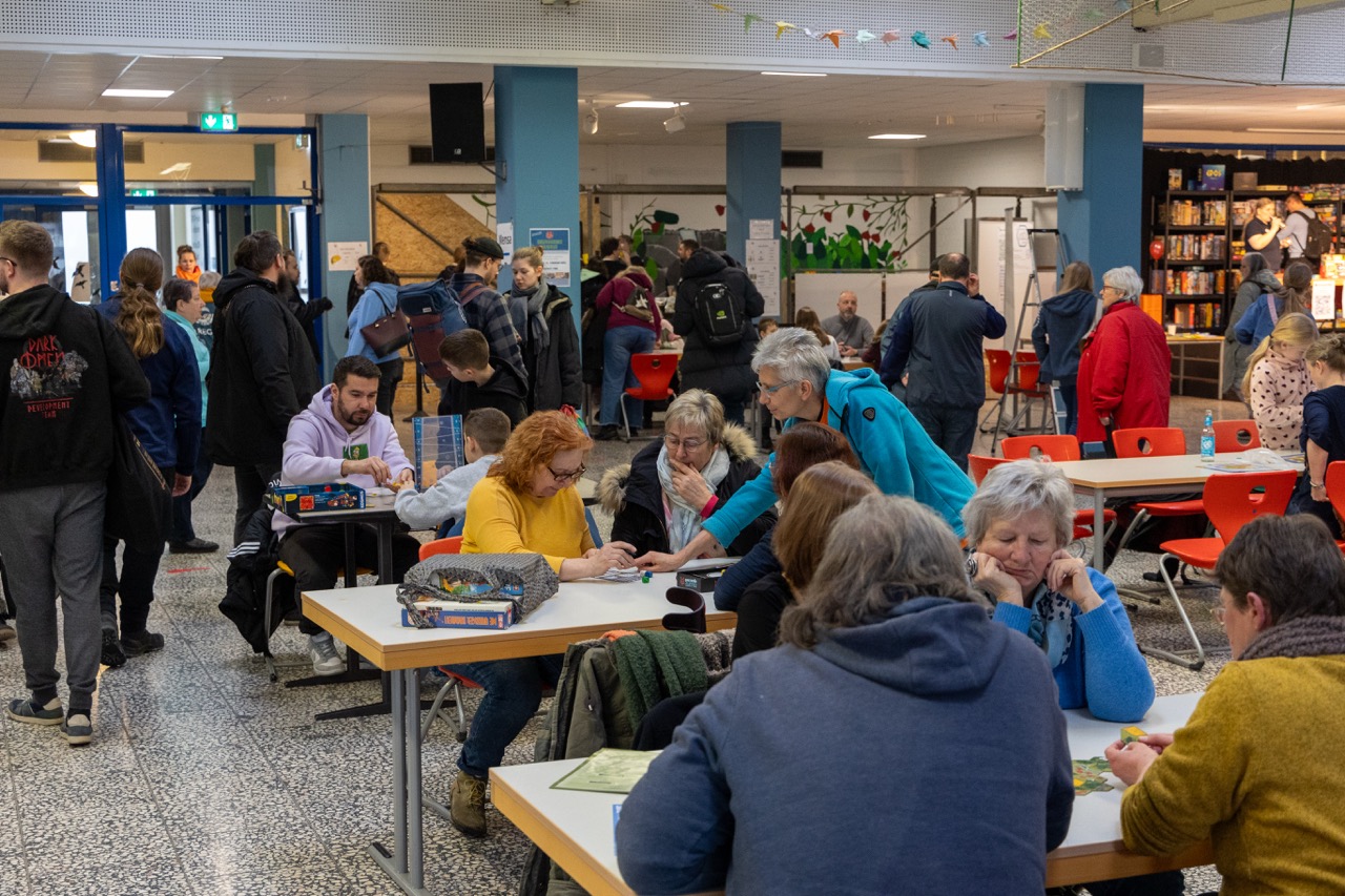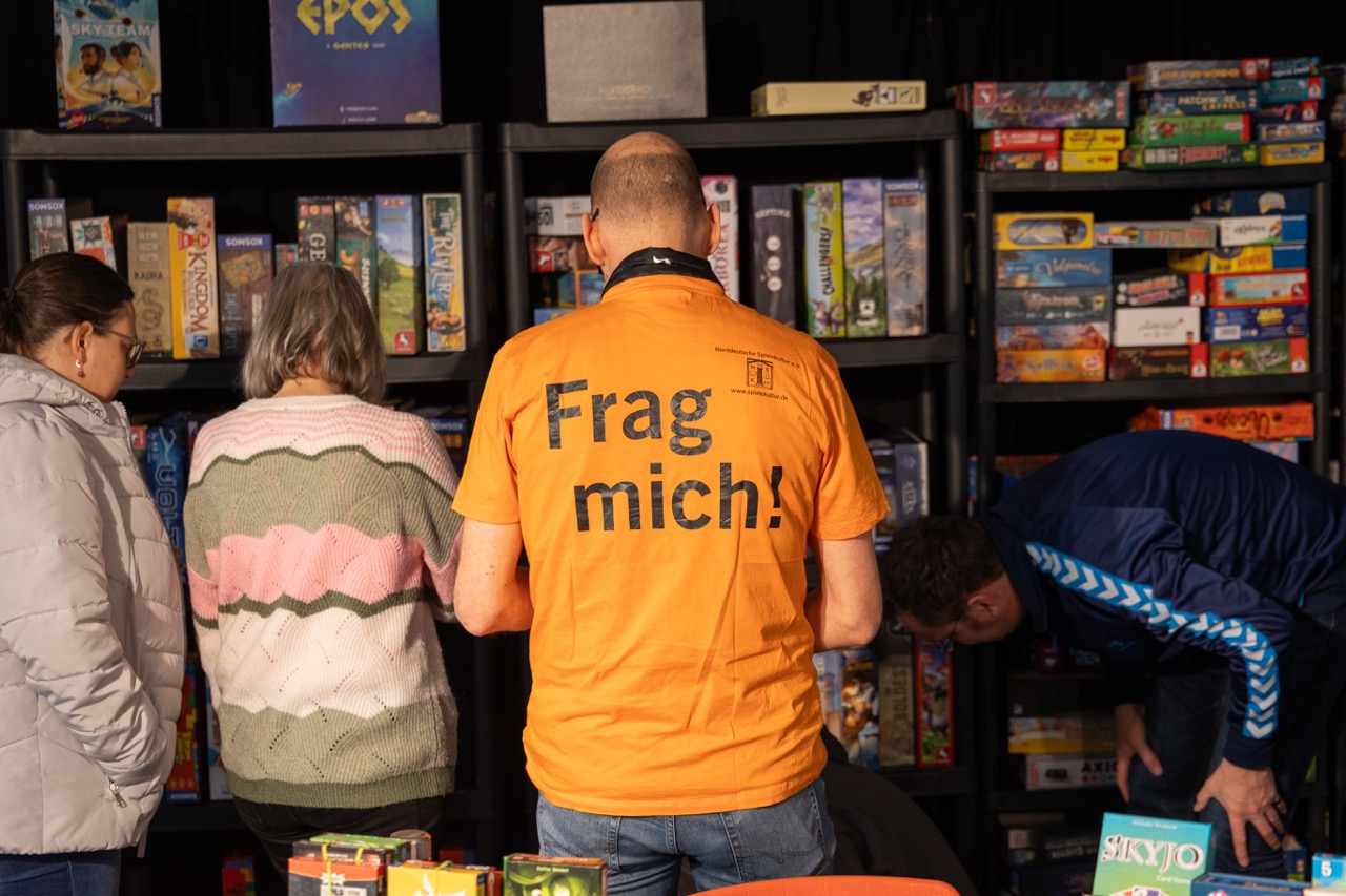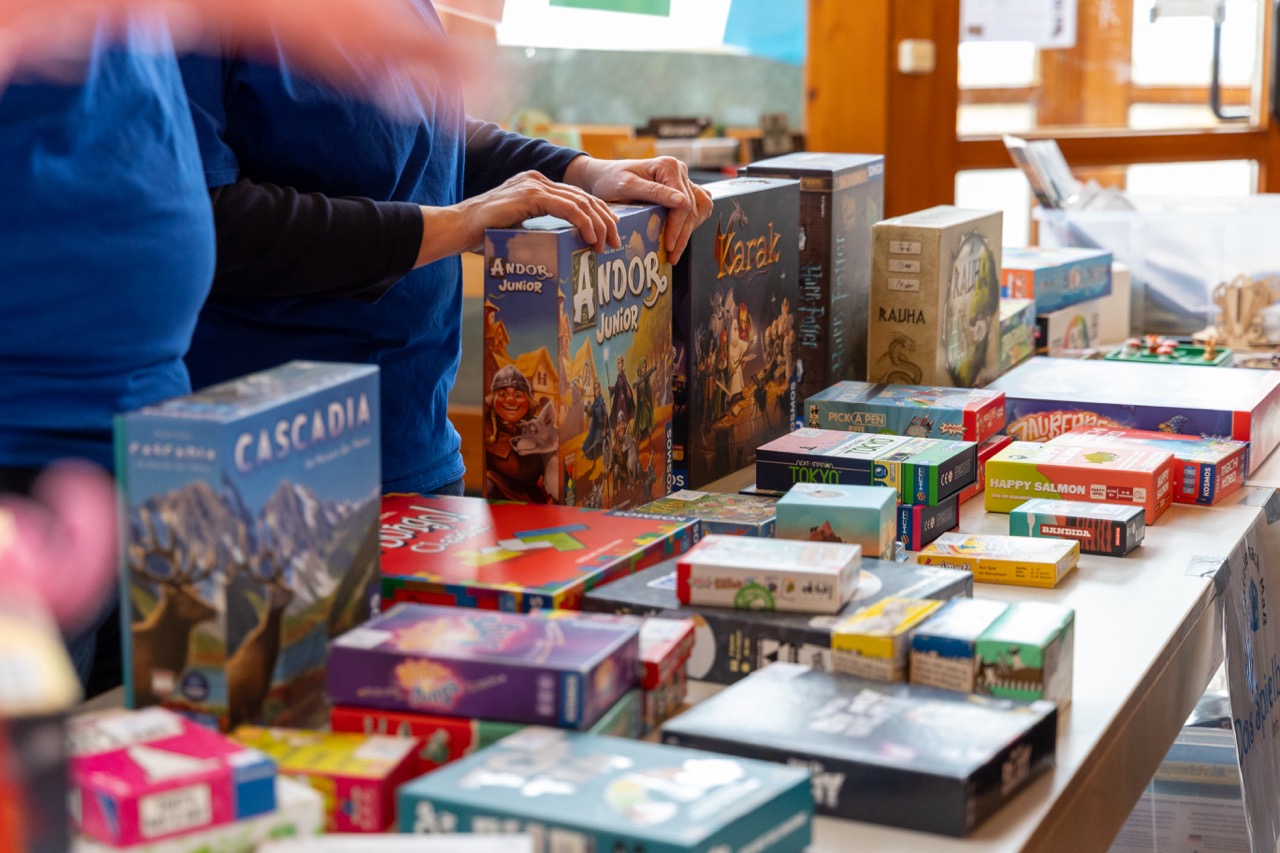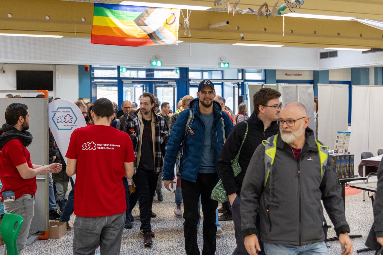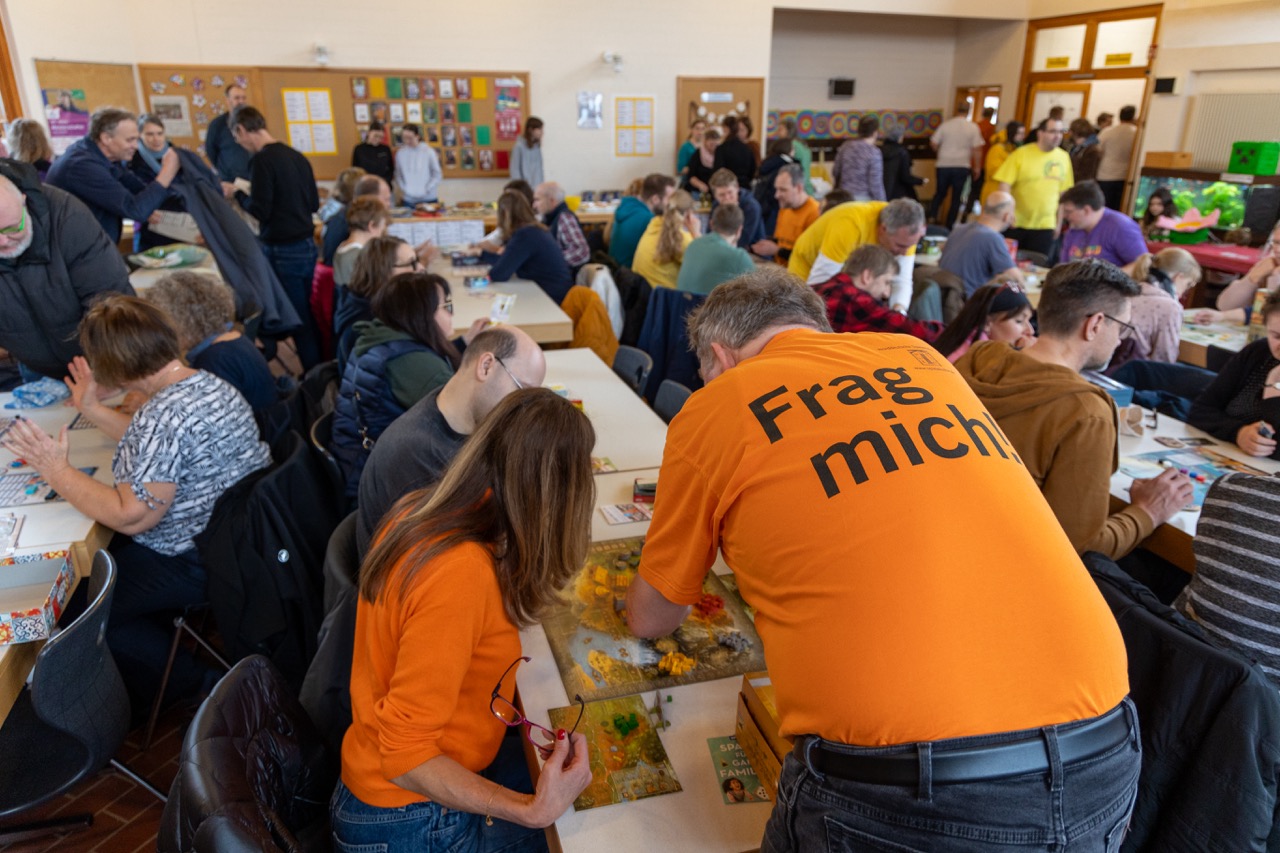 haben die Norddeutsche Spielekultur e.V. und die Brettspielfreunde Hildesheim e.V. zur kostenlosen Ausleihe bereit gestellt. Wir hatten über 20 helfende Hände mehr oder weniger im Dauereinsatz. Dazu kommen noch die vielen Freiwilligen aus der Schule!