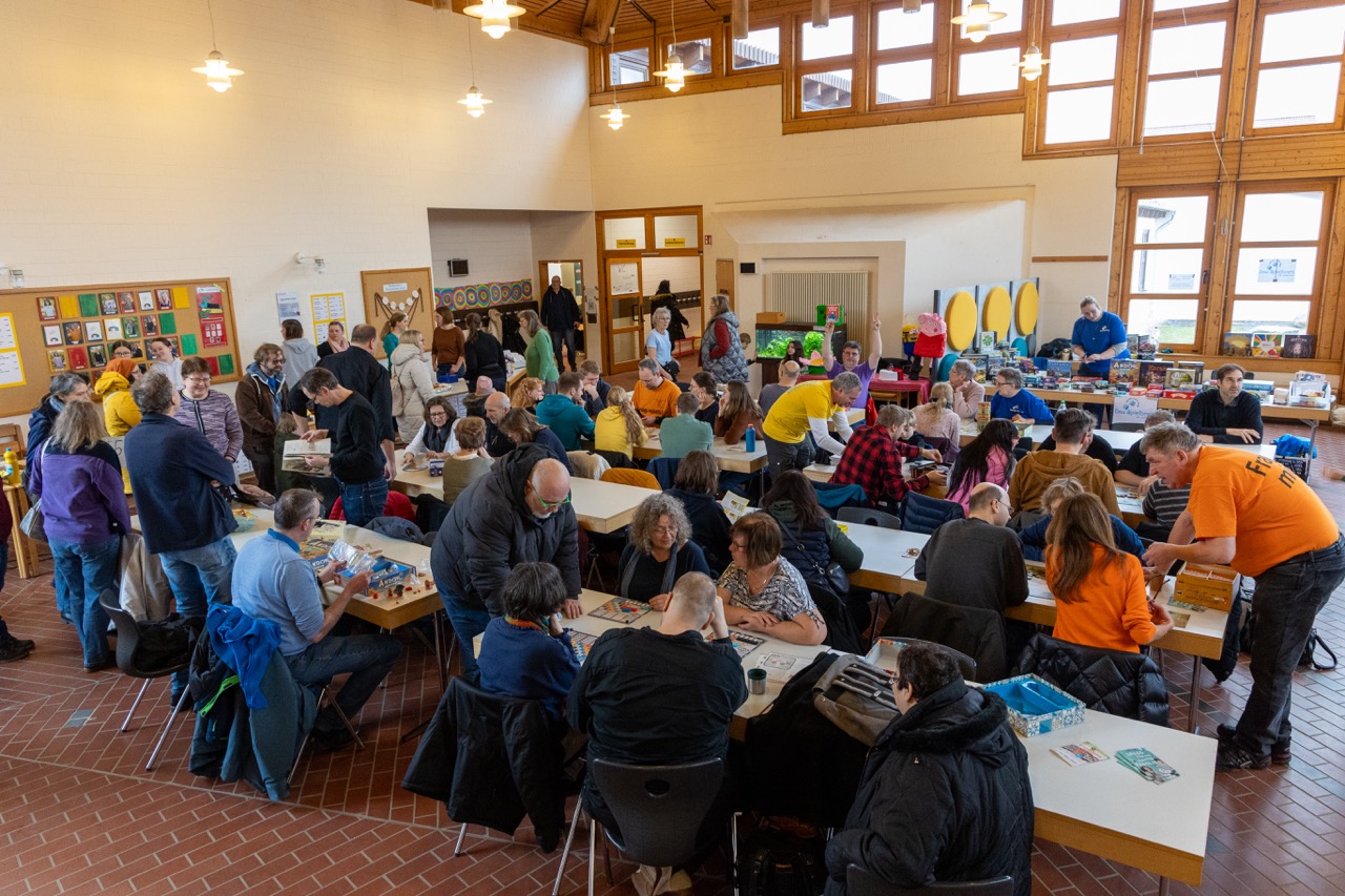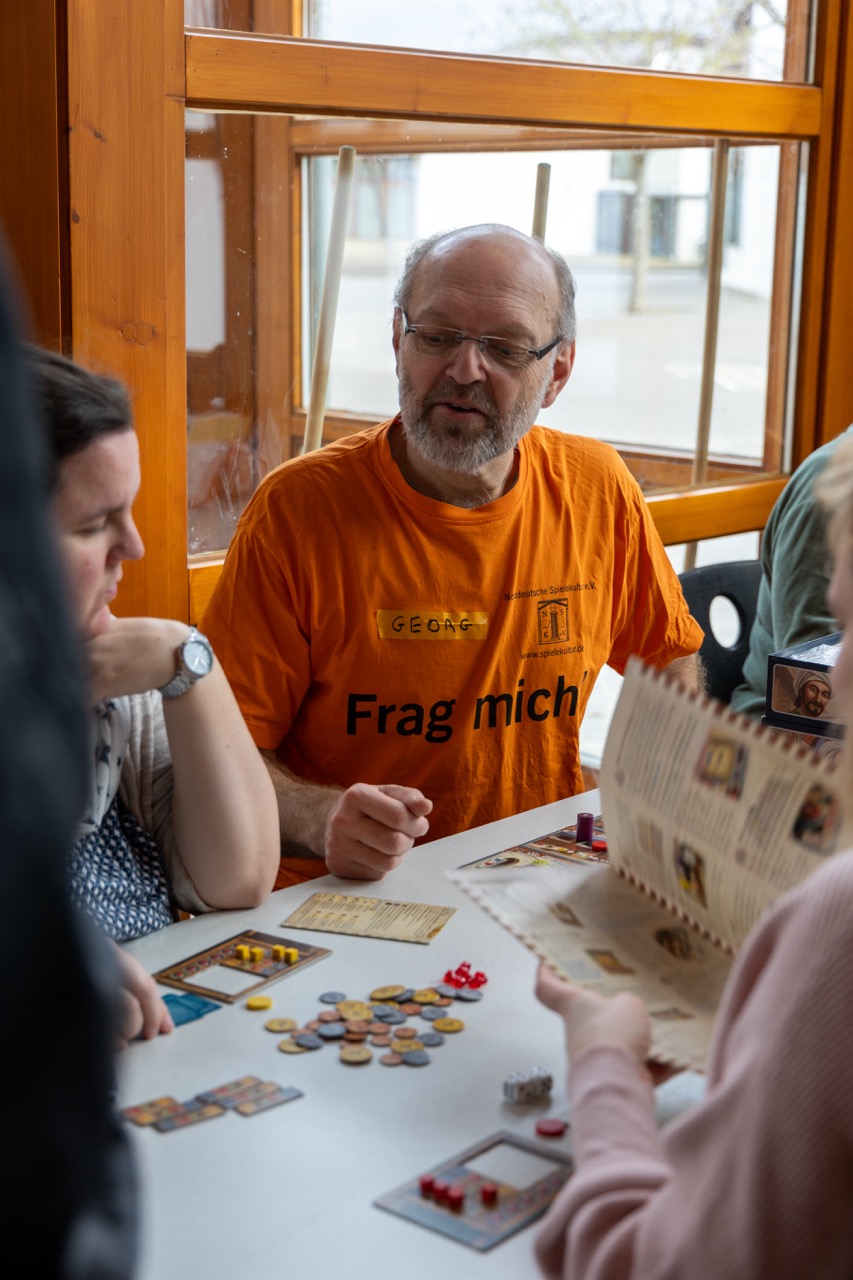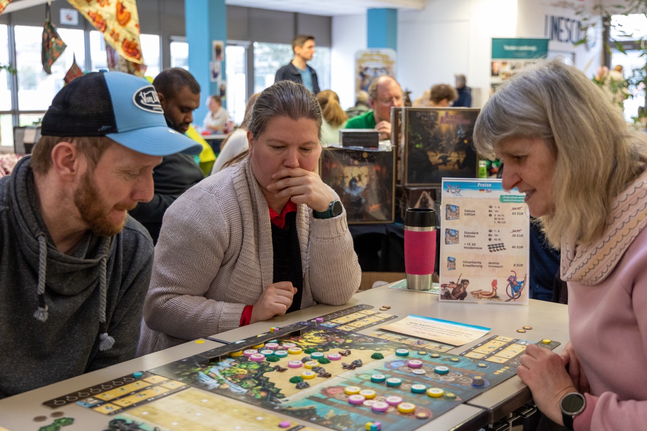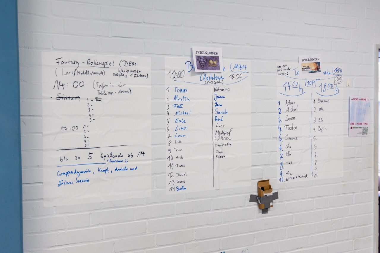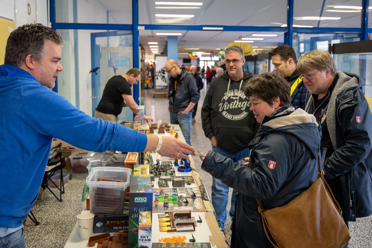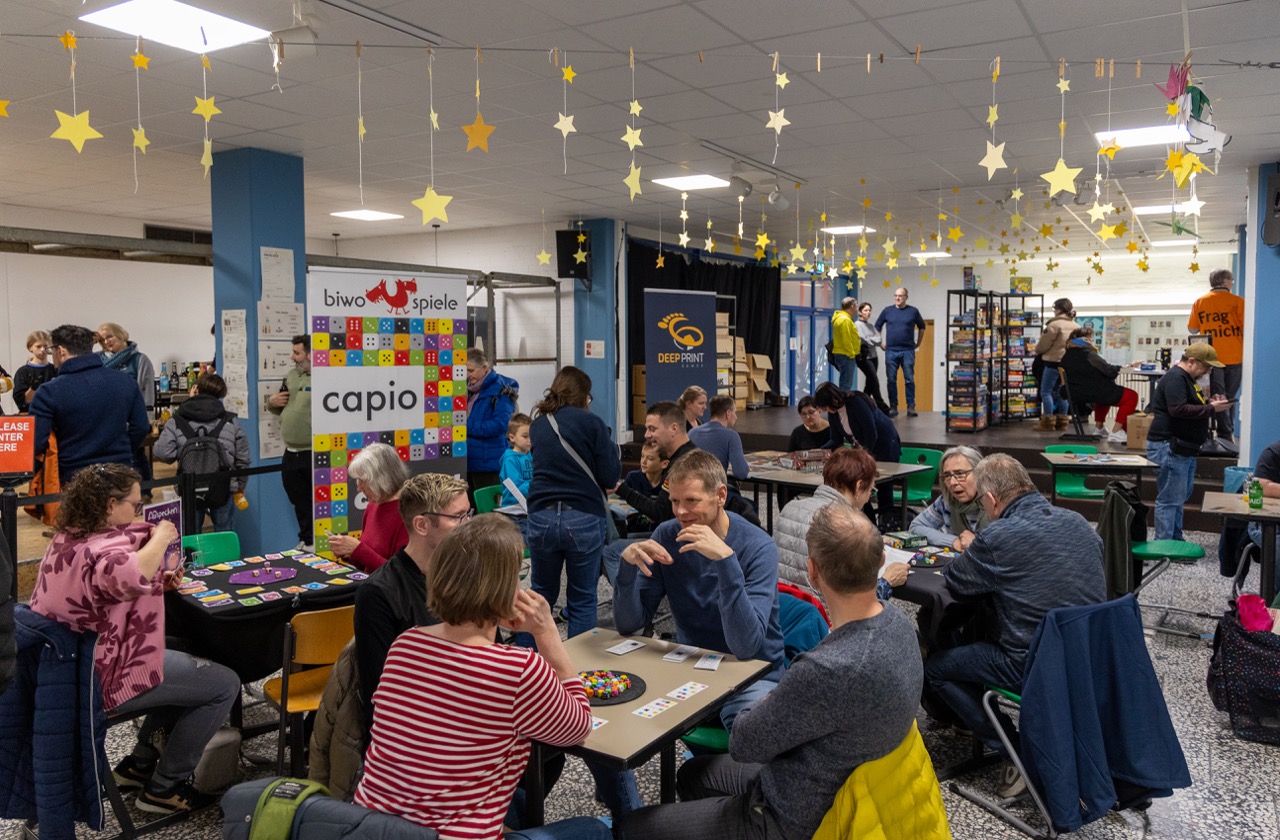 haben die Norddeutsche Spielekultur e.V. und die Brettspielfreunde Hildesheim e.V. zur kostenlosen Ausleihe bereit gestellt. Wir hatten über 20 helfende Hände mehr oder weniger im Dauereinsatz. Dazu kommen noch die vielen Freiwilligen aus der Schule!