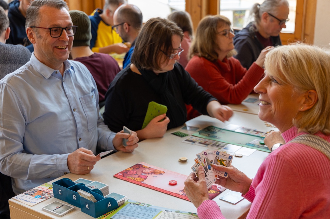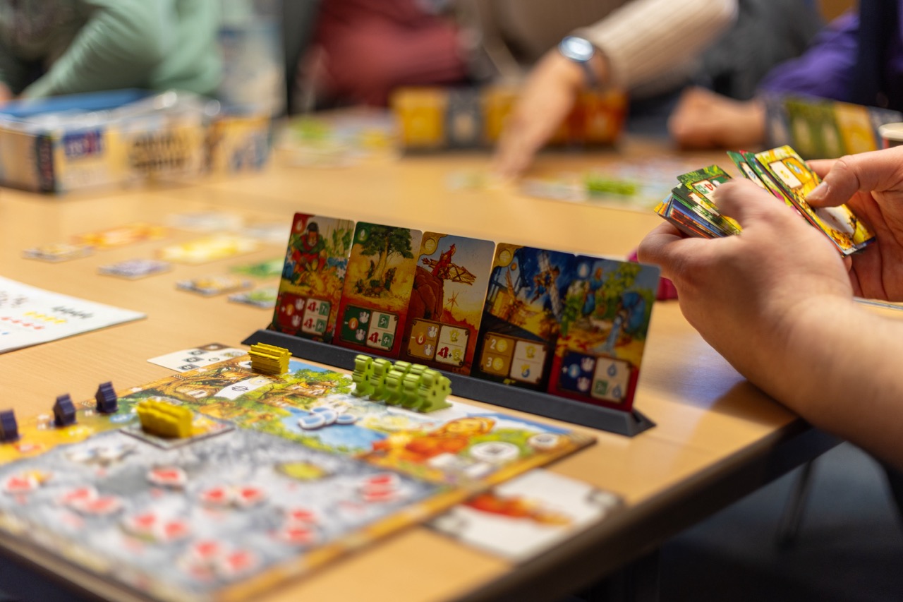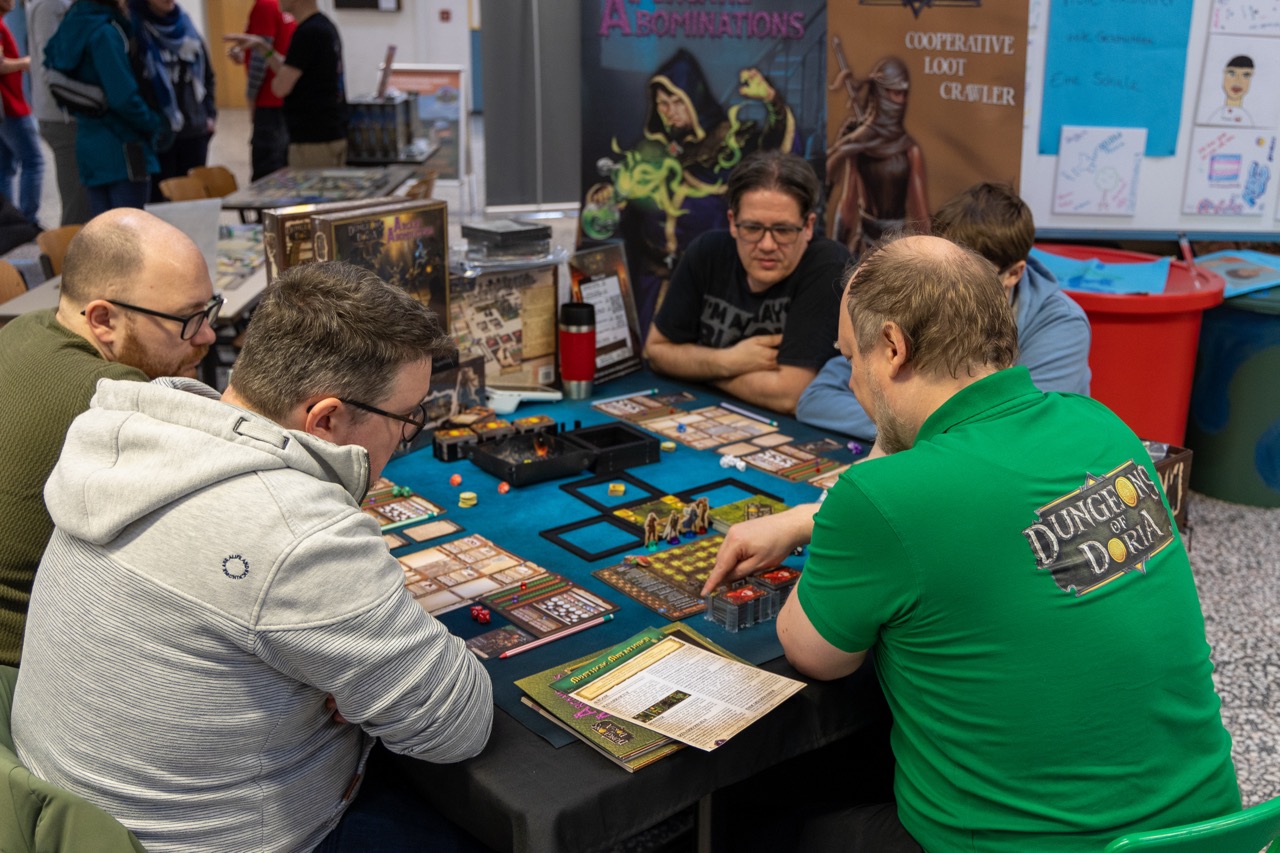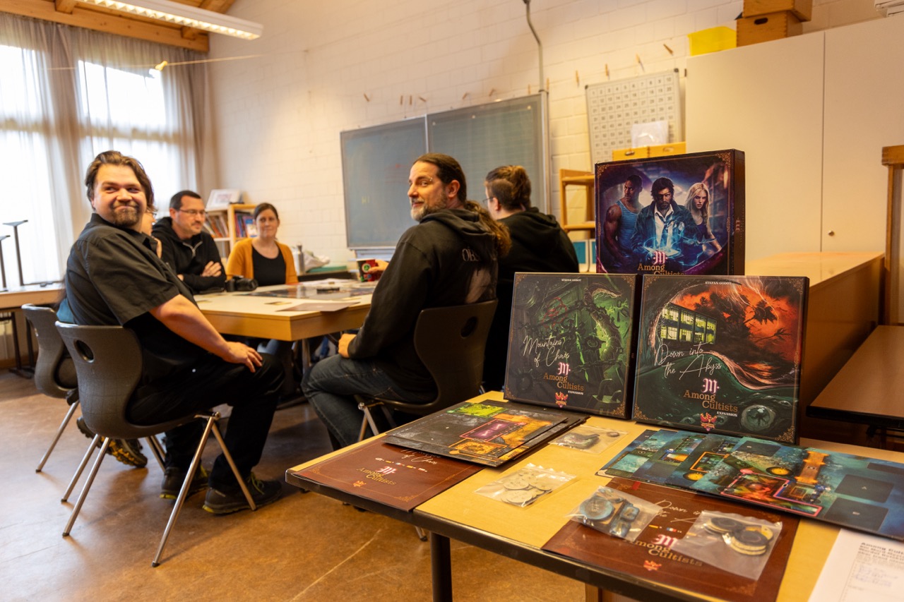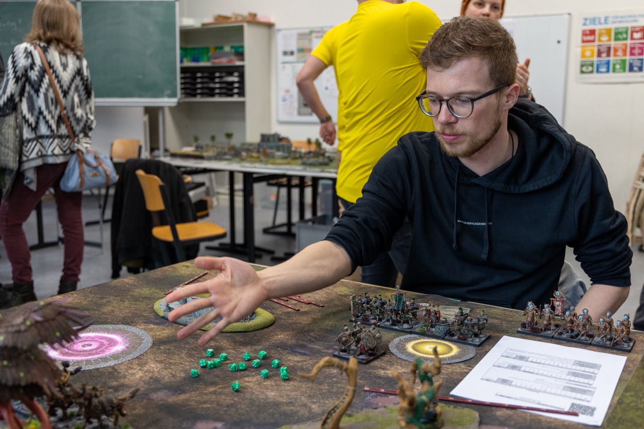 haben die Norddeutsche Spielekultur e.V. und die Brettspielfreunde Hildesheim e.V. zur kostenlosen Ausleihe bereit gestellt. Wir hatten über 20 helfende Hände mehr oder weniger im Dauereinsatz. Dazu kommen noch die vielen Freiwilligen aus der Schule!