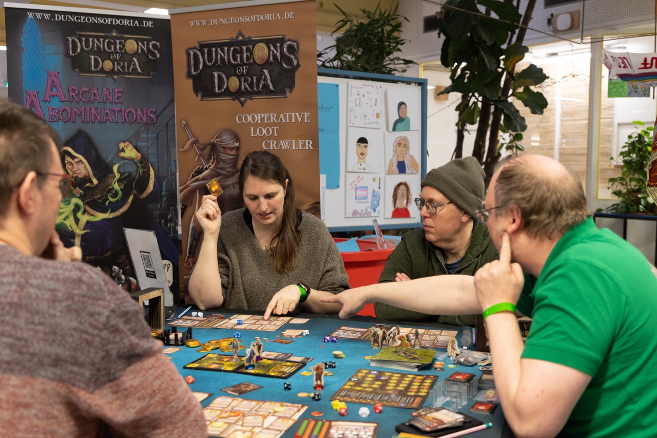 wie Spielrunden von Verlagen, Autorentreffen, Künstlertreffen und auch mal in andere Bereiche wie Tabletop oder Rollenspiel konnten wir anbieten. Vollständig ausgebucht waren die Blood on the Clocktower-Runden. Aus der Idee heraus haben sich sogar einige noch spontan für mehreren Runden Werwolf zusammengesetzt und an dem Tag weitere organisiert. Danke dafür!